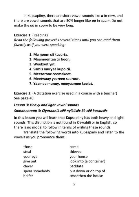 Kitapuuni kunyēē ku kupeyookuuk cēē meenaye sumaaneet ākoo siliisyeet ām kupsapiiny. Miitē ŋaleek cēē yēēmē nam sēsiliisyē tāpoon, nteenee mācēktōōs limte yoo keŋalaal āk yoo kaŋalaal piiko alak. Ŋalyaaptaap kupsapiiny kunyēē poonto wulēē ciytooy ŋaleek cēē macēēnyoortooy kusuunku nto ŋelyeepiik alak.